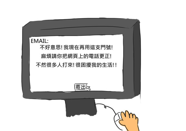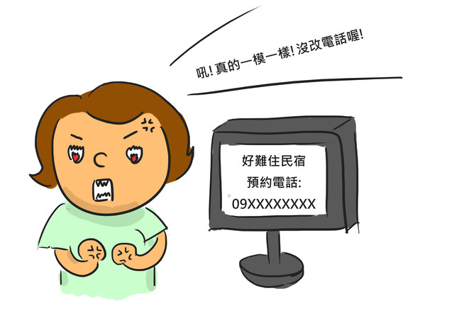 <!-- Origin Article URL: http://www.wretch.cc/blog/ukim0506/4160 --> <!-- RTE=new --><font style="FONT-SIZE:16px;">前陣子換門號就常常有人打來<br><br></font><span><a href="http://www.wretch.cc/album/show.php?i=ukim0506&b=1&f=1334482364.jpg" target="_blank"><img border="0" src="http://pic.pimg.tw/iambalaa/1363178044-586215479.jpg"></a><br><font style="FONT-SIZE:16px;">一開始還蠻有耐心的說"打錯囉"<br>接到後來....<br><br></font></span><span><a href="http://www.wretch.cc/album/show.php?i=ukim0506&b=1&f=1334482356.jpg" target="_blank"><img border="0" src="http://pic.pimg.tw/iambalaa/1363178044-2239053866.jpg"></a><br><font style="FONT-SIZE:16px;">還有半夜打還訂房間的阿!<br>我就忍不住搜尋一下好難住(當然不是叫好難住民宿啦XD)<br>網頁上的電話還真的是我的耶!怎麼沒改過來阿~~<br>不過看起來真的很不錯~連我都想拿起電話預約了呢(喂~)<br></font></span><span><a href="http://www.wretch.cc/album/show.php?i=ukim0506&b=1&f=1334482344.jpg" target="_blank"><img border="0" src="http://pic.pimg.tw/iambalaa/1363178045-3753421534.jpg?v=1363178046"></a><br><font style="FONT-SIZE:16px;">立馬寫了一封信<br></font></span><span><br><a href="http://www.wretch.cc/album/show.php?i=ukim0506&b=1&f=1334482361.jpg" target="_blank"><img border="0" src="http://pic.pimg.tw/iambalaa/1363178047-1521546796.jpg"></a><br><font style="FONT-SIZE:16px;">送出!!<br>就再送出的之後....<br><span><a href="http://www.wretch.cc/album/show.php?i=ukim0506&b=1&f=1334482353.jpg" target="_blank"><img border="0" src="http://pic.pimg.tw/iambalaa/1363178048-3592687110.jpg"></a><br></span>仔細看清楚網頁上的電話....<br><span><a href="http://www.wretch.cc/album/show.php?i=ukim0506&b=1&f=1334482354.jpg" target="_blank"><img border="0" src="http://pic.pimg.tw/iambalaa/1363178049-3354785862.jpg"></a><br></span>OH MY GOD~~<br>老闆一定以為遇到銷ㄟ亂罵人<br>原來....<br>我沒資格嫌那些打錯電話的人<br>因為我是<br><br></font></span><span><a href="http://www.wretch.cc/album/show.php?i=ukim0506&b=1&f=1334482345.jpg" target="_blank"><img border="0" src="http://pic.pimg.tw/iambalaa/1363178050-2416027854.jpg?v=1363178051"></a><br><font style="FONT-SIZE:16px;">不過打錯電話的人真的很多~老闆一定覺得生意怎麼變差了XDD<br>下次打電話要看清楚,寄信也要看清楚喔....<br></font><br><br></span><span><a href="http://www.wretch.cc/album/show.php?i=ukim0506&b=1&f=1334482373.jpg" target="_blank"><img border="0" src="http://pic.pimg.tw/iambalaa/1363178051-3939421590.jpg?v=1363178052"></a><br></span>